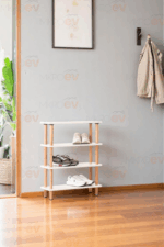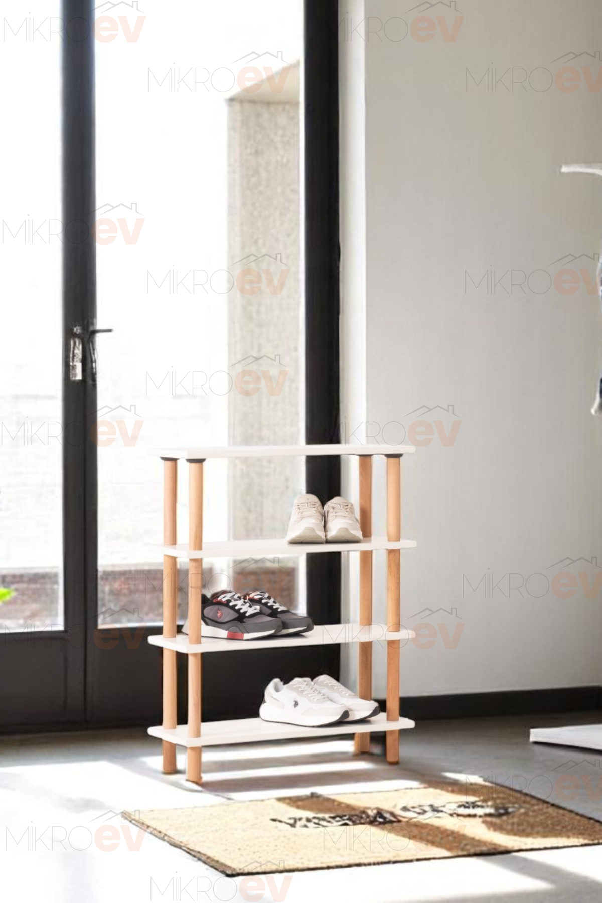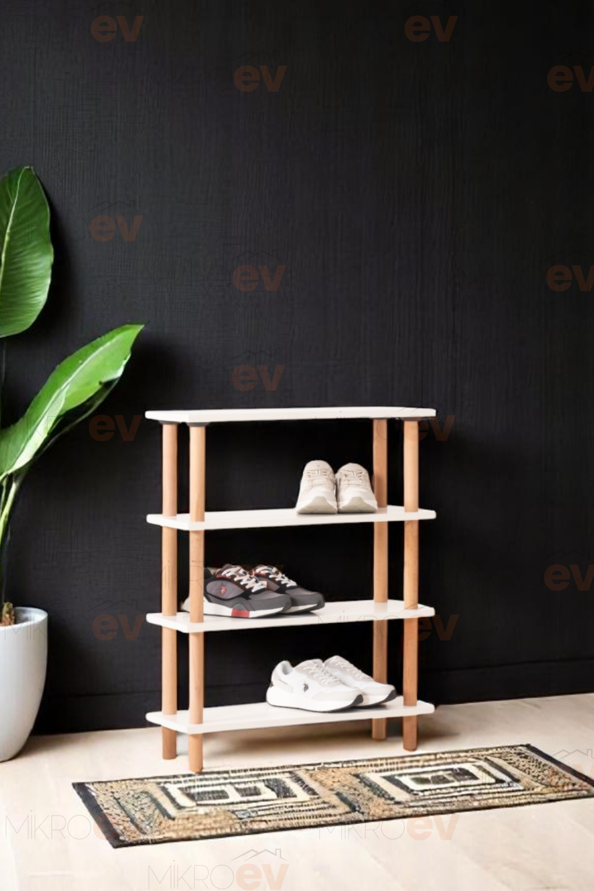 Beyaz 4 raflı ayakkabılık, modern ve minimalist tasarımıyla yaşam alanınıza şıklık ve düzen katıyor. Ahşap ayakları, doğal dokusuyla sıcak bir hava oluştururken beyaz raflar ferah ve sade bir görünüm sunuyor.