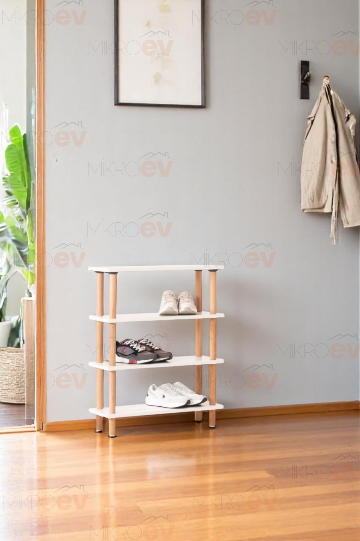 Beyaz 4 Raflı Ayakkabılık | Minimalist ve Kullanışlı Tasarım