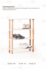 Toplam 4 rafıyla, ayakkabılarınızı düzenli ve temiz bir şekilde saklamanıza yardımcı olur. Her raf, farklı ayakkabı türlerini kolayca yerleştirebileceğiniz geniş bir alan sağlar.